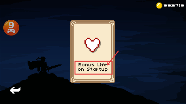 2、解锁【Bonus-Life-on-Startup】效果后,每次启动关卡会额外获得1点生命值,增强生存能力。