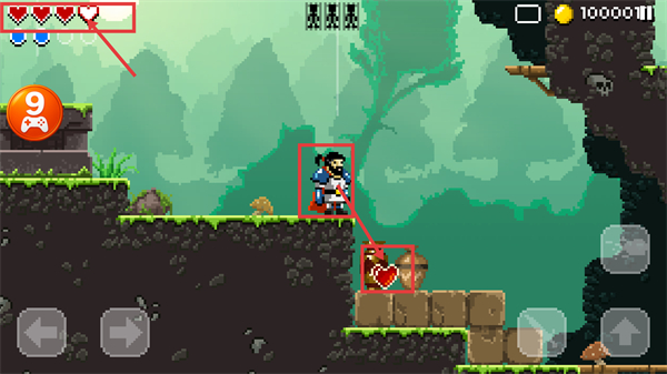 4、靠近场景中的【红心道具】拾取,可直接补充角色的【生命值】,提升关卡续航能力。
