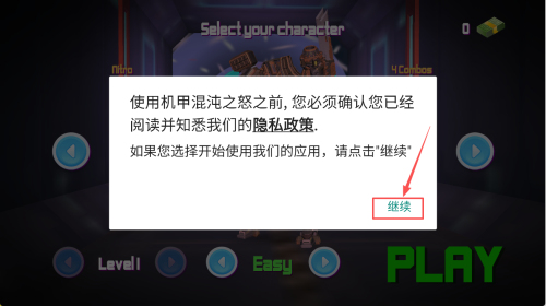 1、同意隐私政策:在游戏启动界面,阅读隐私政策后点击“继续”。