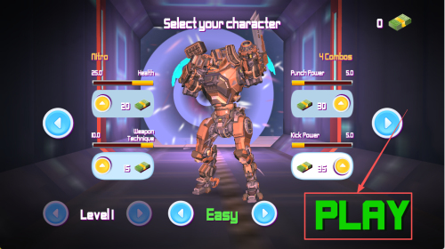 3、开始战斗:选择角色后,点击“PLAY”按钮开始战斗。