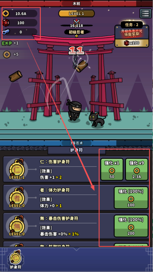 2、利用 AFK 机制离线修炼,上线后领取修炼收益,解锁新忍术或强化现有能力,为应对更强敌人做好战力储备。