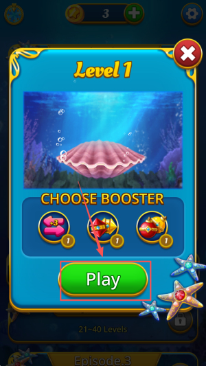 3、开始挑战:在关卡界面,点击Level1,选择CHOOSE BOOSTER后点击Play,正式进入游戏。