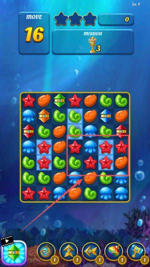 1、开启消除准备:熟悉经典消消乐操作逻辑,明确“匹配海洋生物、完成关卡目标、冲击高分”的核心方向。