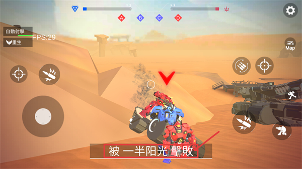 4、激光导弹等重型武器带来震撼视觉冲击,强大火力可瞬间扭转战局,配合机甲技能与地形掩护,让战斗充满翻盘悬念与爽感。