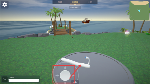 2、切换到【玩游戏】界面后,操控底部方向键可移动已搭建的身体部件,推进场景探索进度。
