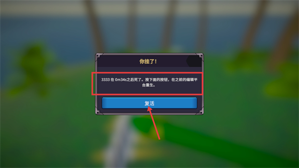 4、若出现【你挂了!】提示,点击【复活】按钮可回到编辑平台重生,继续之前的探索与构建进程。