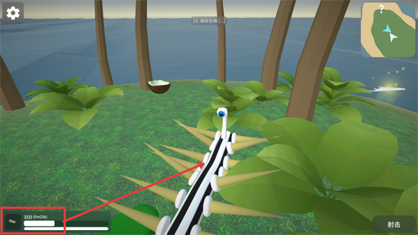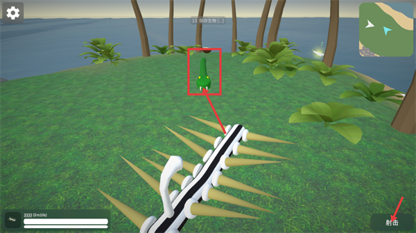 2、进入【玩游戏】界面遇到目标生物时,点击【射击】按钮可使用已装配的武器发起攻击,推进战斗进程。