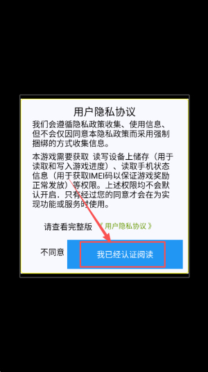1、同意协议:阅读用户隐私协议后点击“我已经认证阅读”进入主界面。