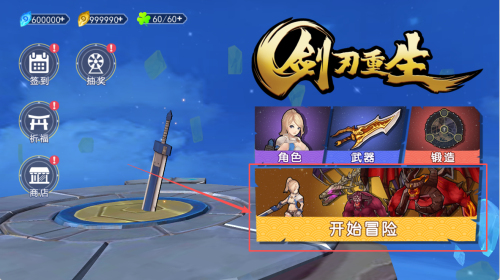 1、进入主界面:启动游戏后,进入主界面,选择“开始冒险”按钮进入游戏。