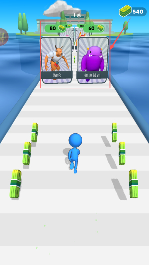 2、 跑酷途中优先收集金币,积累到足够数量后兑换强力卡牌,为后续与对手的对决储备战力 。