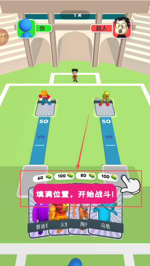 4、准备战斗:在战斗准备界面,点击“填满位置,开始战斗”以开始游戏。