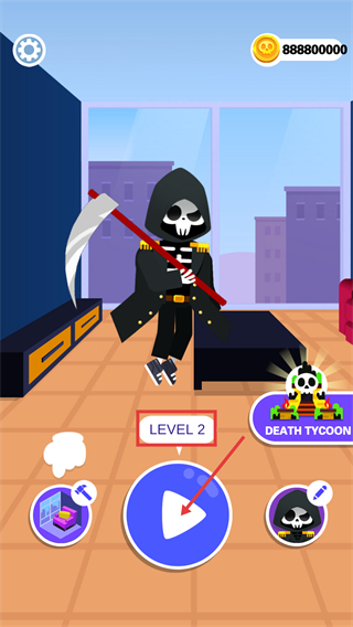 1、进入【LEVEL-2】关卡前,先确认【DEATH-TYCOON】模式,点击蓝色按钮启动关卡,可优先解锁基础道具。