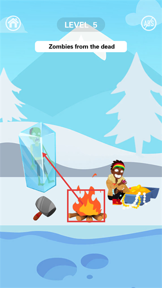 2、进入【LEVEL-5】后,触发【Zombies-from-the-dead】剧情,需先操作篝火道具解锁冰封僵尸以推进流程。