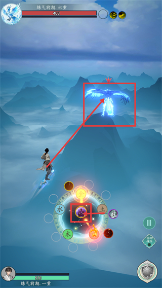 3、对战【练气前期-六重】的敌方时,需利用灵根对应技能攻击,同时留意敌方技能,及时规避高额伤害。