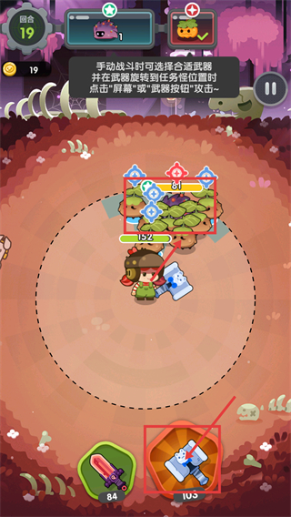 2、手动战斗时,选合适武器拖至目标位置,再点【嘟嘟-嘟嘟嘟-攻击】,按提示操作提升战斗效率。