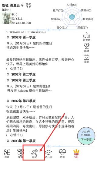3、情商提升路径清晰多样,覆盖文体赛事参与、职业选择、孩童领养及随机事件应对等场景,助力全方位属性成长。