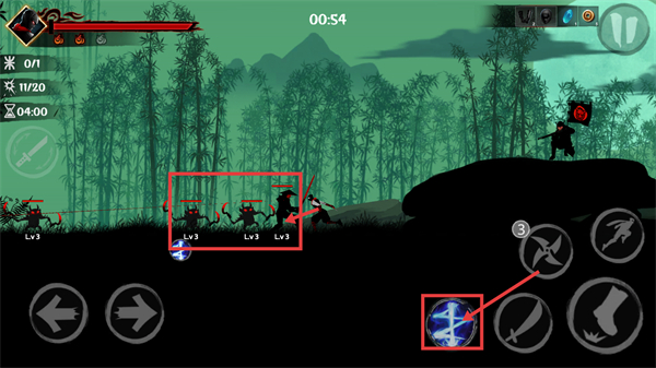 3、面对多名【Lv3】敌人时,使用技能道具群攻,快速清理敌人,同时留意场景中隐藏的补给。