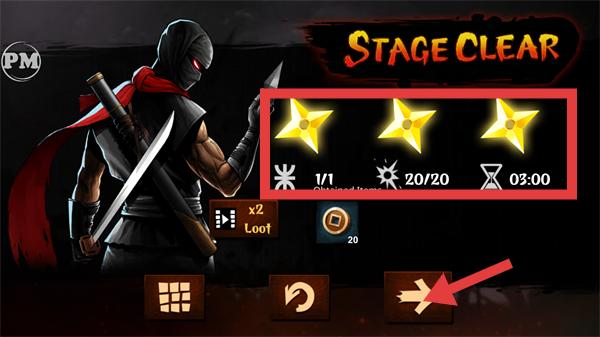 1、通关后获得【3颗-飞镖星级】及【20-货币】奖励,点击箭头按钮可进入下一关,提升关卡进度。