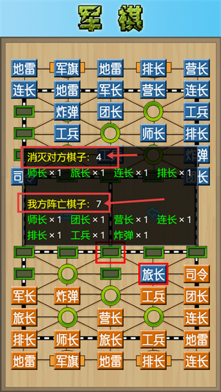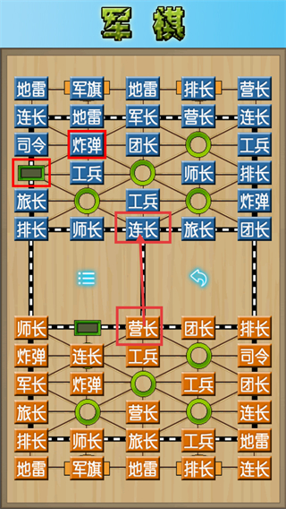 3、当己方【师长】遇敌方同级【师长】时,二者会同时被消灭,需避免同阶棋子无意义消耗,优先用高阶棋子压制低阶。