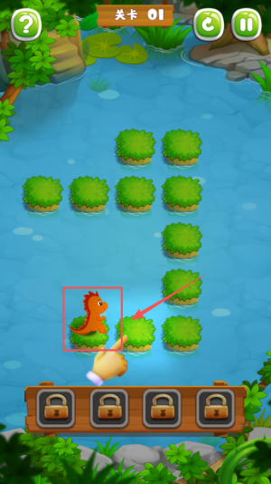 1、熟悉操控基础:掌握小恐龙跳跃的核心操作,明确“从浮水绿草出发、按规则踩块、抵达终点”的核心目标。