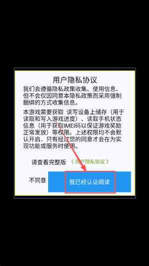 1、同意协议:阅读用户隐私协议后点击“我已经认证阅读”进入主界面。