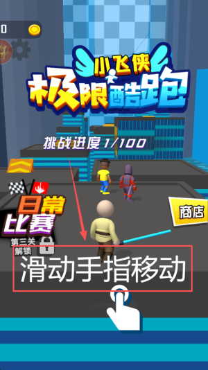 2、进入酷跑:点击“小飞侠 极限酷跑”开始挑战,滑动手指移动角色。