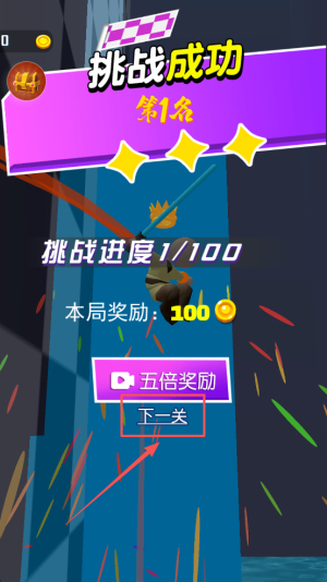 4、领取奖励:出现“挑战成功”后点击“下一关”继续进度。