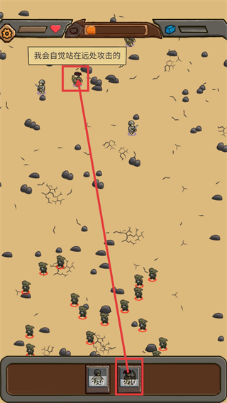 1、当角色提示“我会自觉站在远处攻击的”时,留意下方【2/10】的远程单位数量,确保远程输出充足。