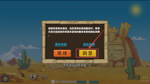1、同意条款:进入游戏后,阅读并同意服务条款和隐私政策,点击“同意”按钮以继续。