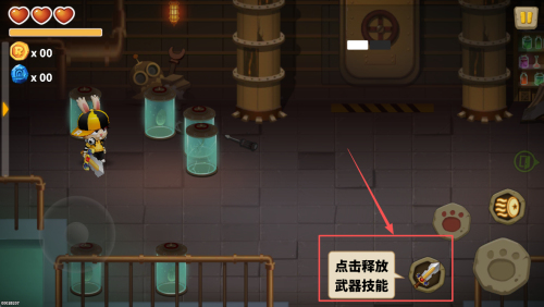 1、 进入游戏后操控渣渣兔等角色开始横版闯关,通过简单操作控制角色移动、攻击,躲避敌人攻击的同时发起反击 。