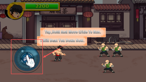 2、 对战时用触摸控制操控角色移动、出拳、踢击,面对敌人攻击及时闪避,抓住间隙发起反击 。