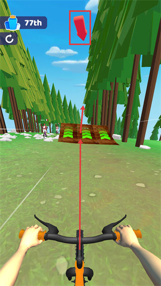 2、遇到带绿色箭头的加速板时,对准方向通过可获得短时间提速,配合【长按加速】进一步拉开差距。