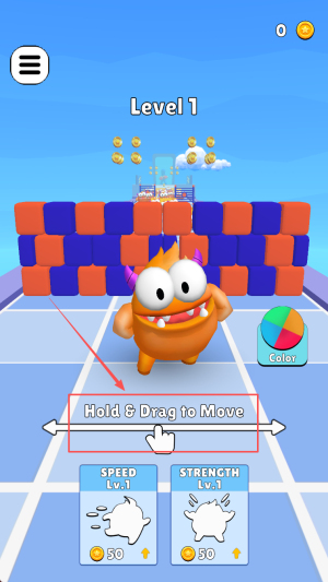1、进入关卡:按住“Hold & Drag to Move”提示拖动角色进入Level 1。