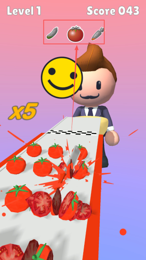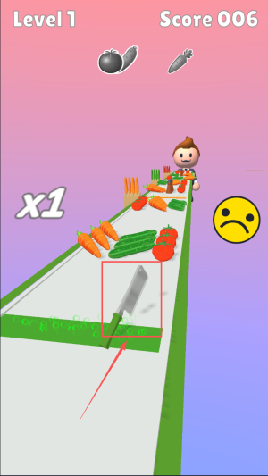 3、精准完成切割:专注操控刀具完成疯狂切割挑战,将蔬菜切成均匀薄片,力求每一处切割细节都精准到位。