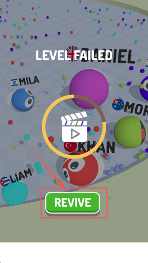 4、失败复活:出现“LEVEL FAILED”时点击“REVIVE”继续挑战。