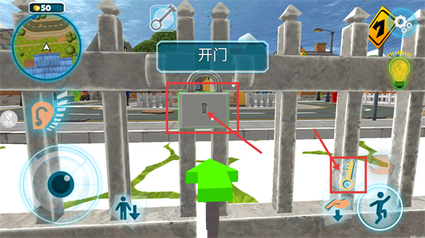 4、携带钥匙前往目标门锁处,执行【开门】操作,解锁新的通行区域以继续推进游戏进程。