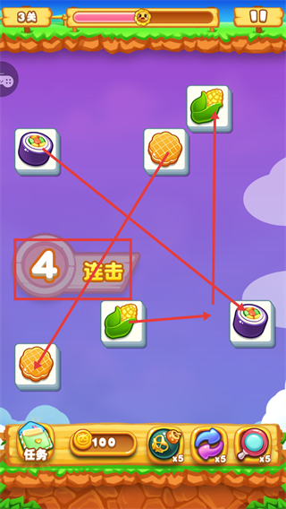 3、达成【4连击】可快速推进进度条,优先寻找同类型物品的密集区域,触发连击效果加速通关。