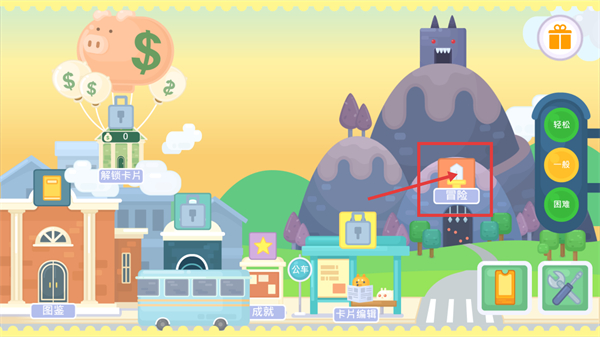 1、在主界面点击【冒险】按钮进入关卡,可选择【轻松】【一般】【困难】难度,优先从低难度开始熟悉玩法。