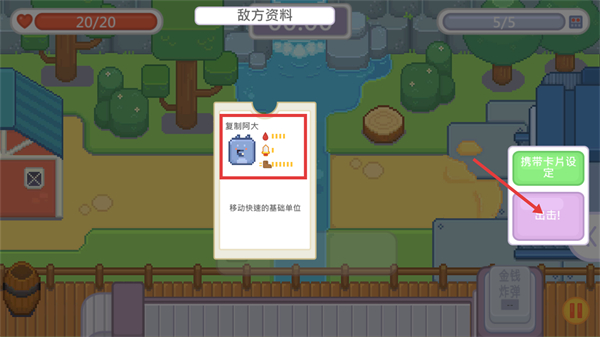 2、战前查看【复制阿大】的敌方资料,了解其是移动快速的基础单位,再点击【出击!】进入战斗准备应对。