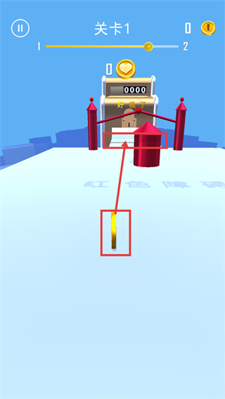 3、接近终点时,操控硬币穿过【红色障碍】区域,精准进入装置以完成关卡目标。
