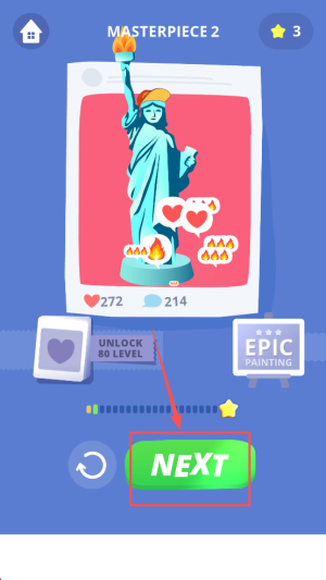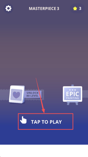1、进入游戏:点击“TAP TO PLAY”进入,看到“MASTERPIECE3 UNLOCK EPIC 80 LEVEL PAINTING”提示。