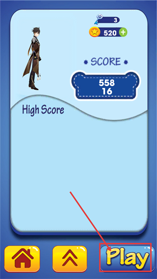 1、查看当前【SCORE-558-16】与【High-Score】后,点击【Play】按钮可快速进入游戏对局,继续积累分数。