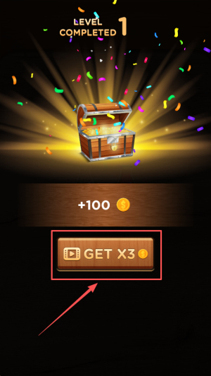 4、完成关卡:出现“LEVEL COMPLETED +100”提示后,点击领取奖励并进入下一关。