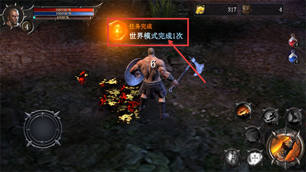 4、完成【世界模式完成1次】任务后,可获得金币与道具奖励,角色等级也会提升,后续可继续挑战更高难度内容。