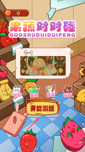 2、选择关卡:在主界面点击“1-1”图标,选择“皮肤”主题关卡,点击“开始游戏”进入。