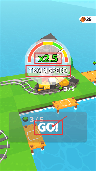 1、观察到【x2.5】-【TRAIN-SPEED】增益时,点击【GO!】启动列车,可高效推进关卡进度。