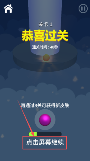 4、继续闯关:通关界面显示“恭喜过关 通关时间:48秒”,点击屏幕自动进入下一关。