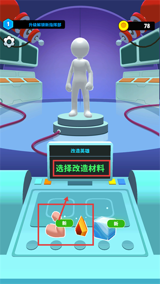 1、在【改造英雄】界面选择【新】标识的改造材料,完成初始英雄的改造步骤。