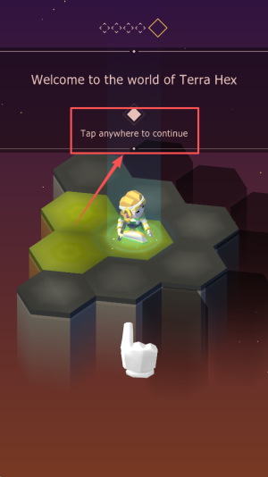 1、进入游戏:点击主界面任意位置,进入Terra Hex世界。