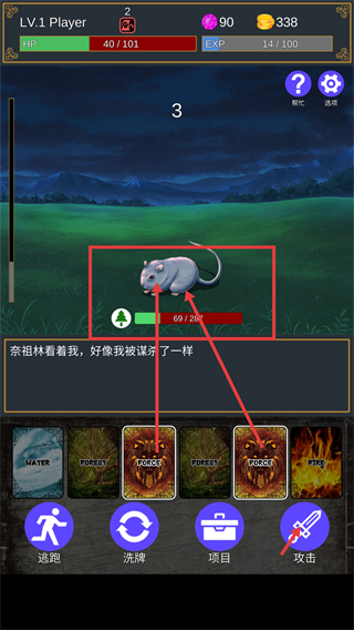 3、遭遇【奈祖林】时,优先使用【FORCE】属性卡牌,点击【攻击】按钮对其造成对应伤害。